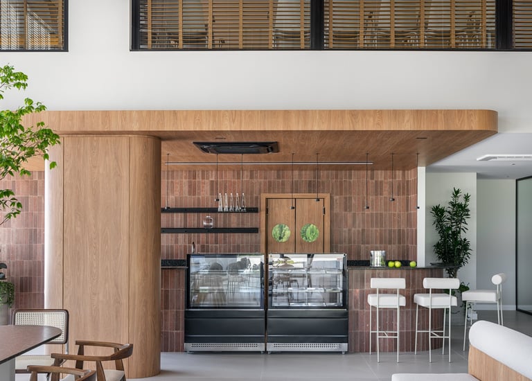 Com ambiente sofisticado e arquitetura integrada ao prédio, o Matcha Café combina design contemporâneo, luz natural e uma atmosfera acolhedora que convida a desacelerar, seja para uma reunião de negócios, uma pausa estratégica ou um momento de inspiração.